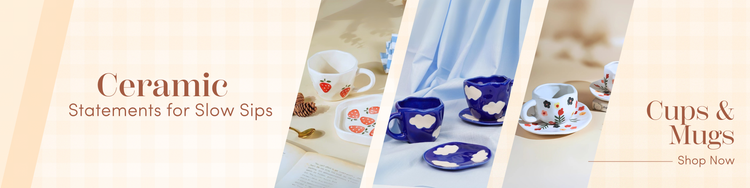 Add a touch of whimsy to your drinkware collection with this navy blue ceramic cup and saucer set, featuring a playful cloud pattern. Each piece is handcrafted with a unique irregular shape, combining artistry with functionality. Perfect for coffee, tea, or espresso, this set...- From Rs. 369