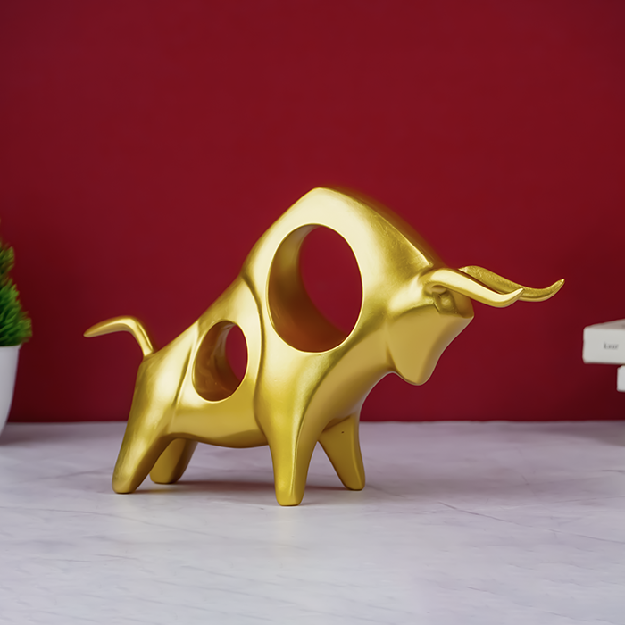 Why You Should Buy: This Gold Abstract Bull Sculpture with Geometric Cutouts is a perfect addition for those who appreciate modern art and bold decor pieces. Its unique design and vibrant gold finish make it a standout piece that can transform any room. Whether displayed in your living room, office, or gallery, this sculpture reflects strength, power, and a keen sense of style.