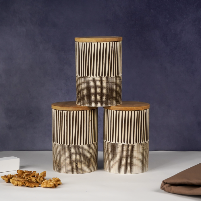 The Beige Textured Storage Jar with Lid Set is perfect for those who appreciate both style and practicality. Keep your kitchen or living space organized while adding a touch of contemporary sophistication with this elegant set of storage jars.