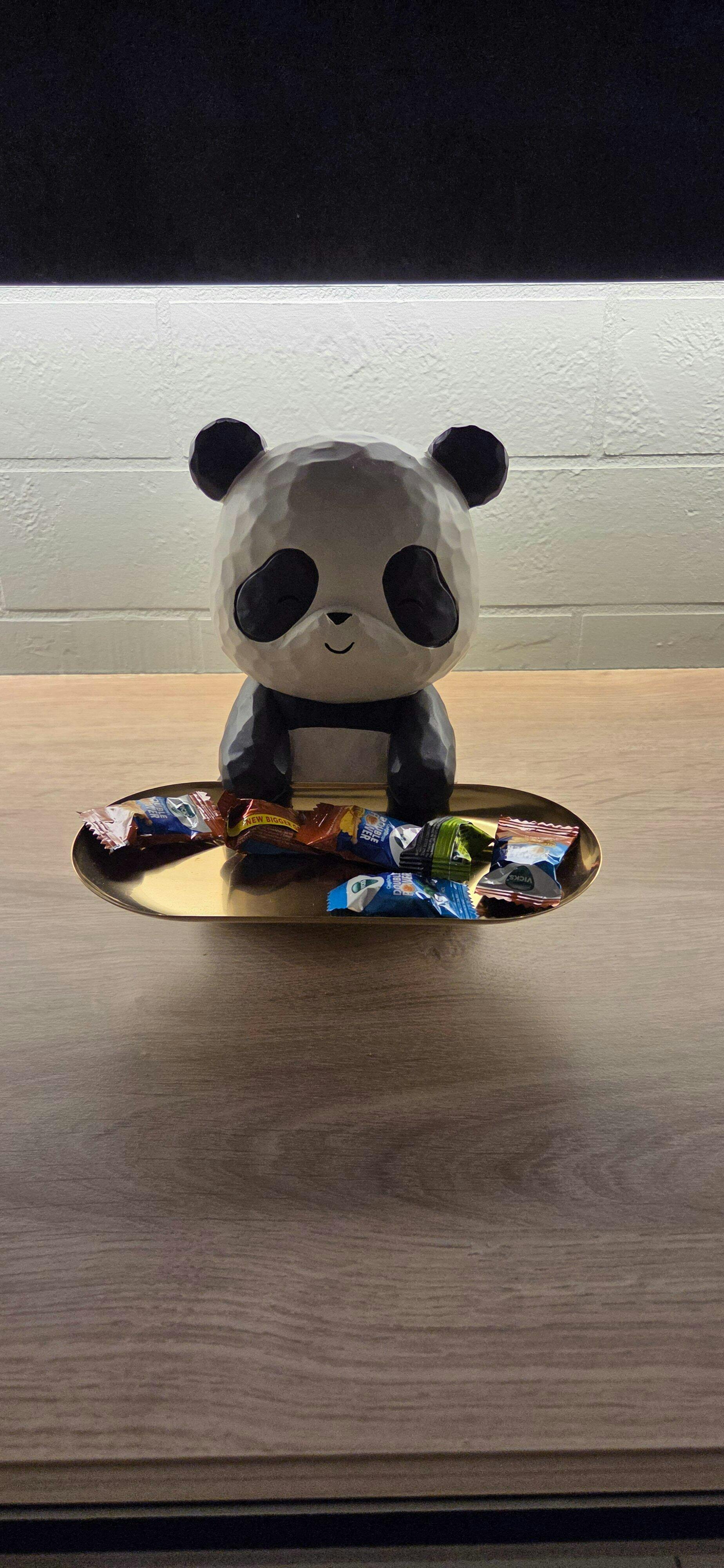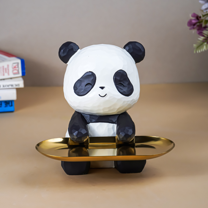 This panda tray holder combines playful design with practical functionality, making it perfect for a variety of uses. Place it on a vanity to organize rings and bracelets or on an entryway console for keys and loose change. Its delightful panda design and golden tray make it a conversation-worthy piece that complements modern, minimalist, or eclectic decor themes. A thoughtful gift for animal lovers or anyone who enjoys unique home accessories.