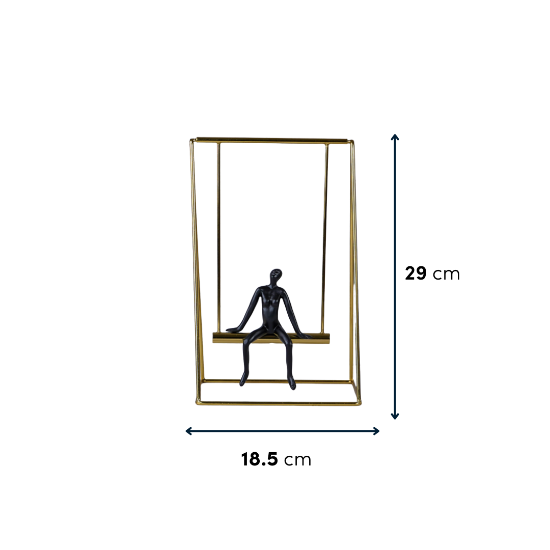 Enhance your home with the modern and artistic presence of our Black Figure on Gold Swing, a perfect decorative piece that adds a touch of elegance and contemporary style to your living space.