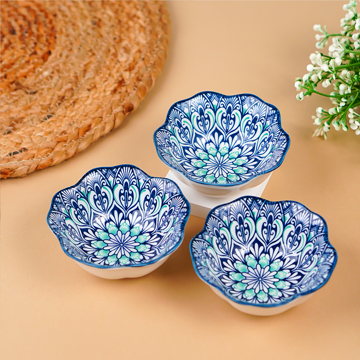 Lifestyle Integration: Whether for everyday meals or special occasions, these bowls add a calming, artistic touch to your table. The blue floral design and scalloped edge make them perfect for displaying small portions or appetizers.