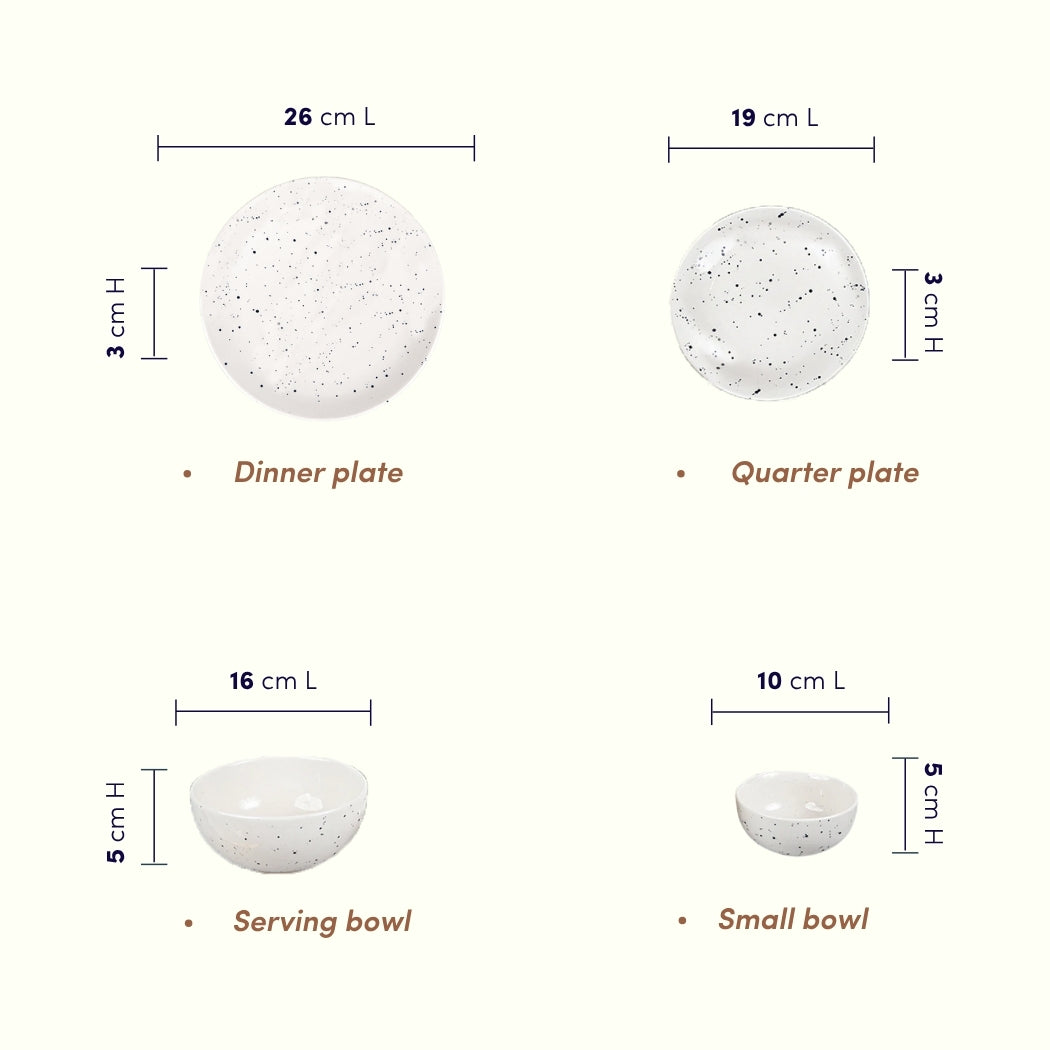 | Dinner Plate | 26 cm x 03 cm x 26 cm | 6 |