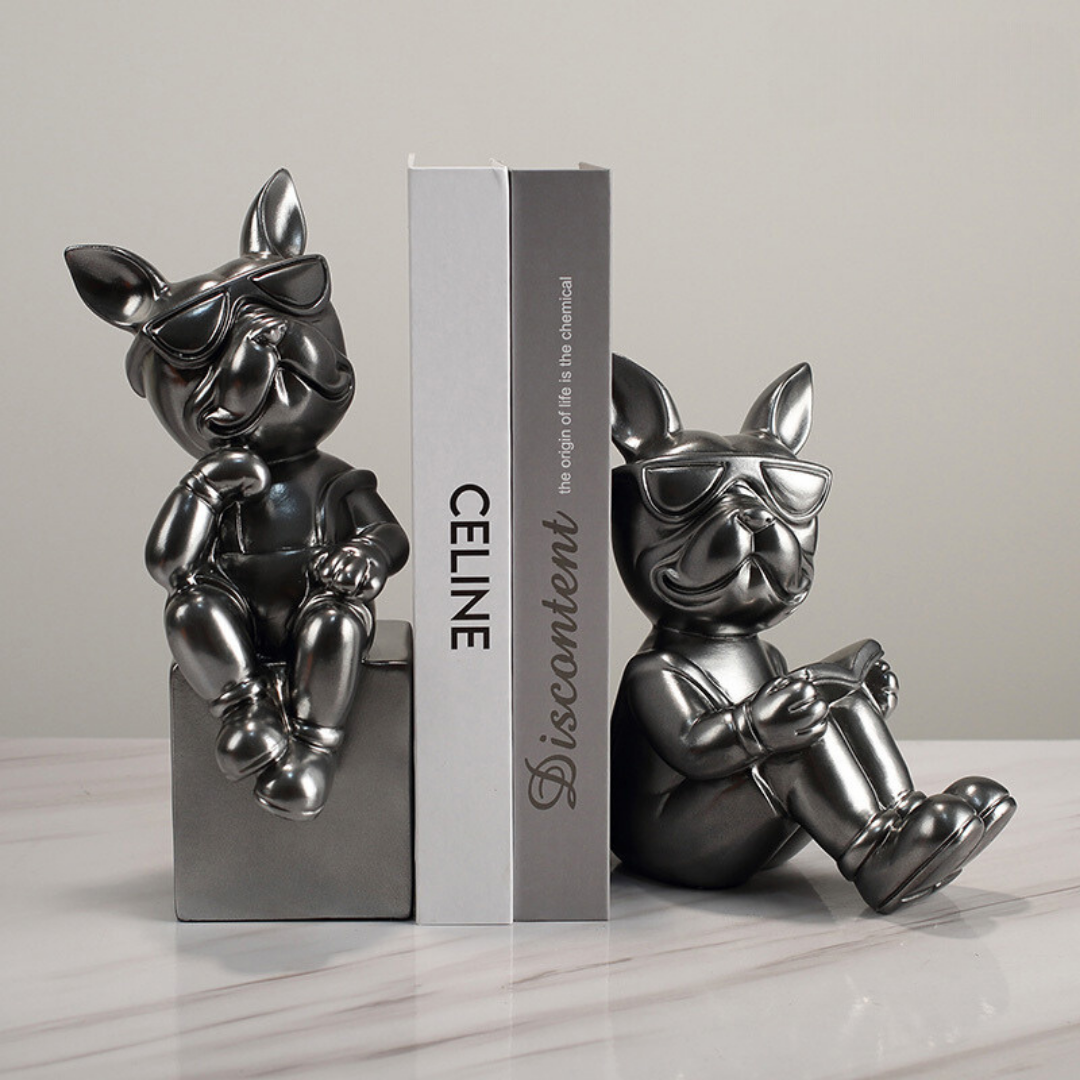 Crafted with attention to detail, the bulldog figurines are made from durable resin with a sleek silver finish, adding a touch of modern sophistication to any bookshelf or desk. The lifelike details, from the wrinkles on their faces to the folds of their paws, capture the endearing charm of these beloved canine companions.