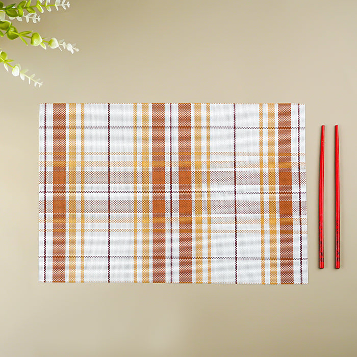 Upgrade your dining space with this brown and white plaid table mat, designed with a textured woven pattern that adds both style and practicality to your table settings. Crafted from durable, heat-resistant material, this table mat protects surfaces while providing a classic plaid aesthetic that complements both modern and rustic décor. Its structured design ensures longevity and easy maintenance, making it ideal for everyday meals and special occasions.
