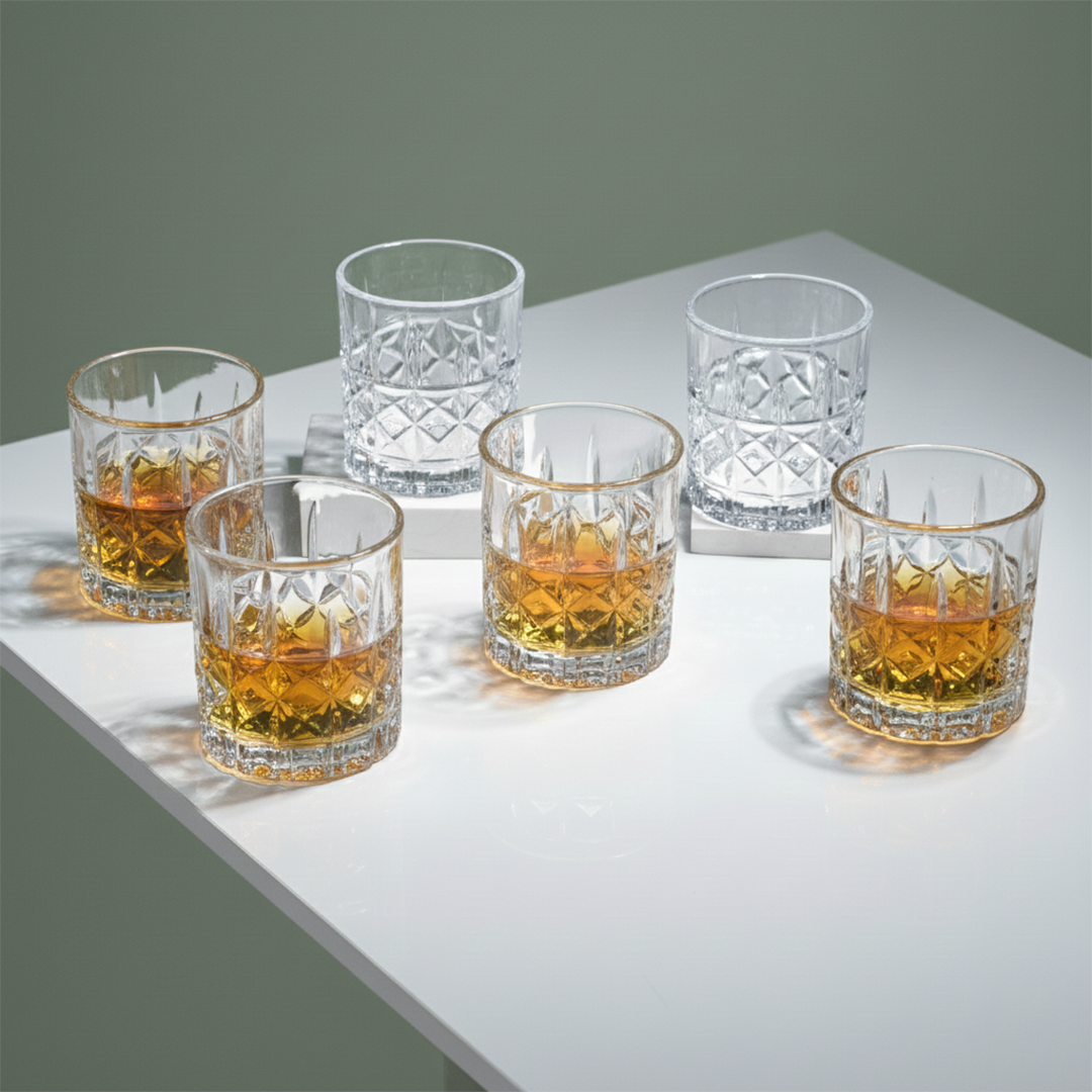 Lifestyle Integration: Picture yourself unwinding after a long day with a glass of fine whiskey, poured into one of these diamond grid cut glasses. Whether you're hosting a tasting night with friends or enjoying a quiet evening alone, these glasses elevate the experience, making each sip a moment to savor. Their modern design fits effortlessly into both contemporary and traditional settings, making them versatile enough for any occasion.