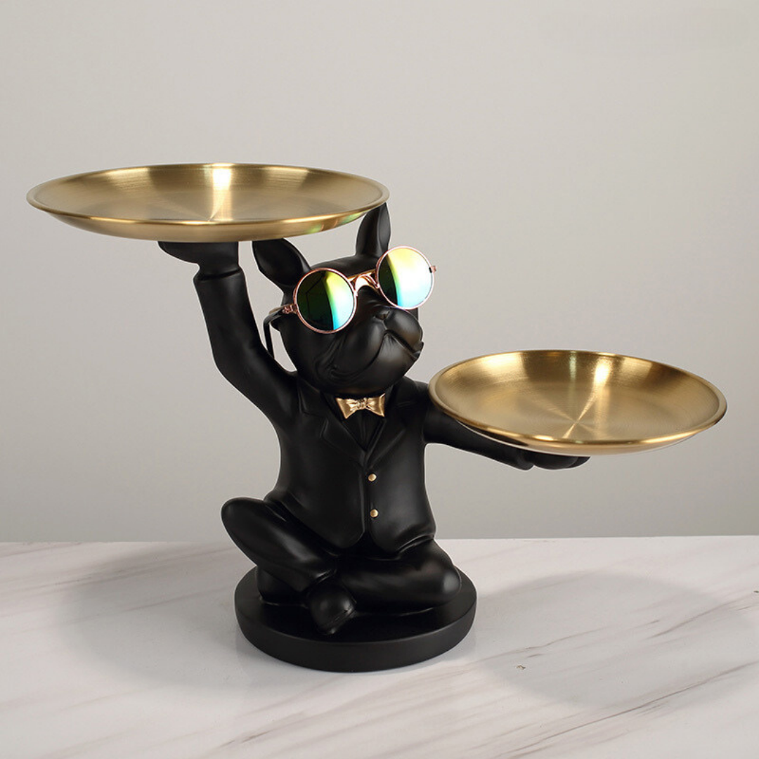 Whether displayed as a standalone piece or as part of a curated art collection, the Black Dog with Golden Plate brings a unique and sophisticated charm to any room. Perfect for dog lovers or those who appreciate art with a touch of luxury, this sculpture is a conversation starter that adds character and style to your home or office.