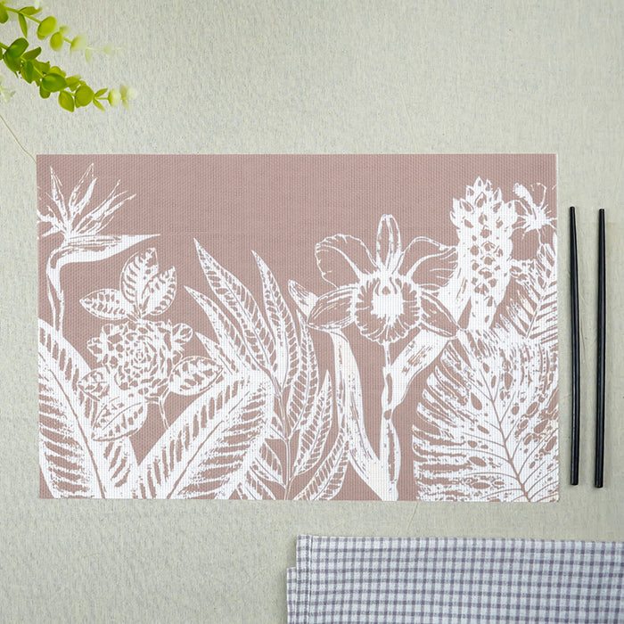 Elevate your dining décor with this dusty pink floral table mat, featuring a white botanical print that adds a soft and artistic touch to any table setting. Made from durable, heat-resistant material, this table mat provides both style and protection, ensuring your surfaces stay clean and scratch-free. The intricate floral design enhances modern, rustic, or vintage-inspired dining spaces, making it a versatile addition to your home.