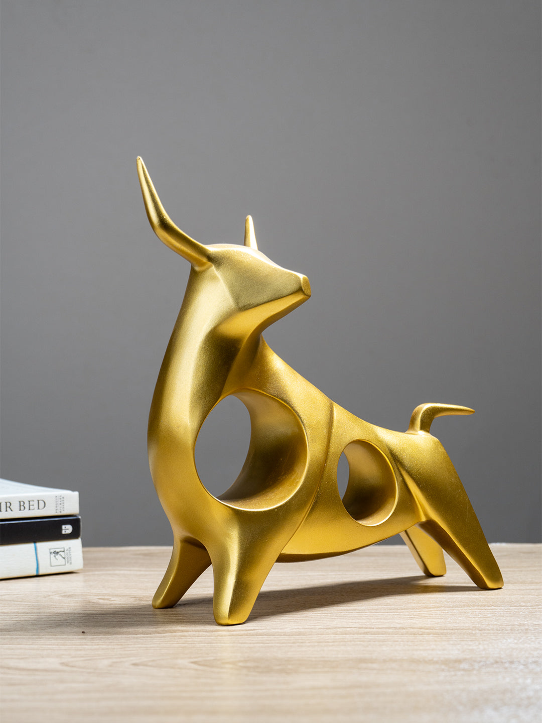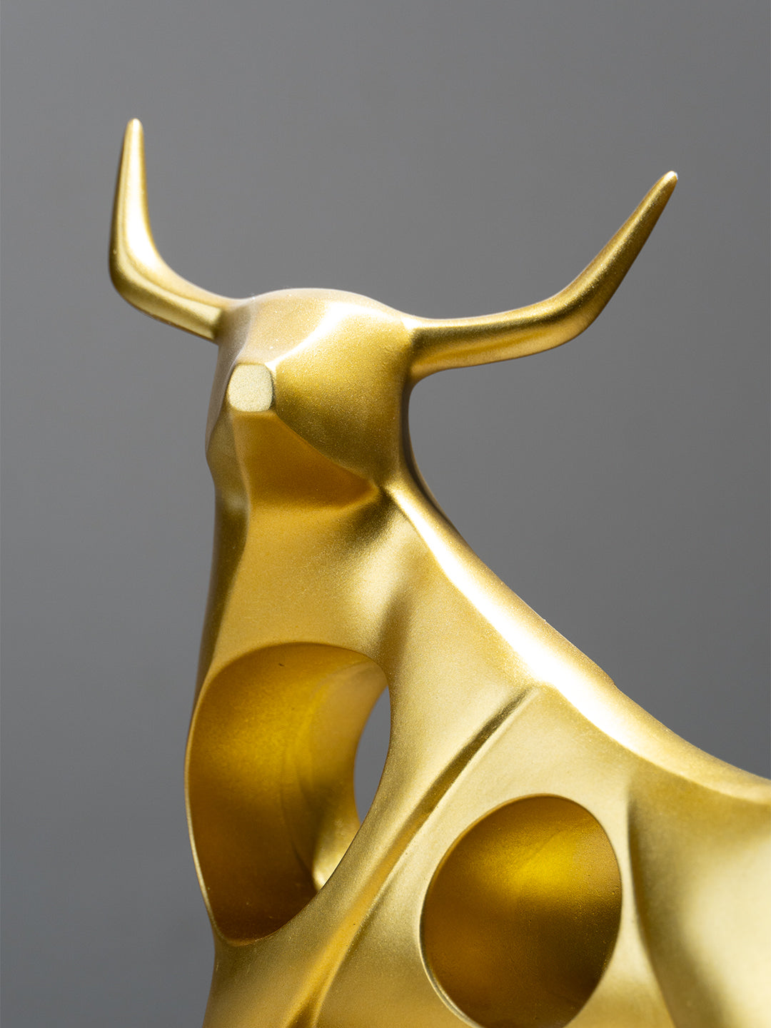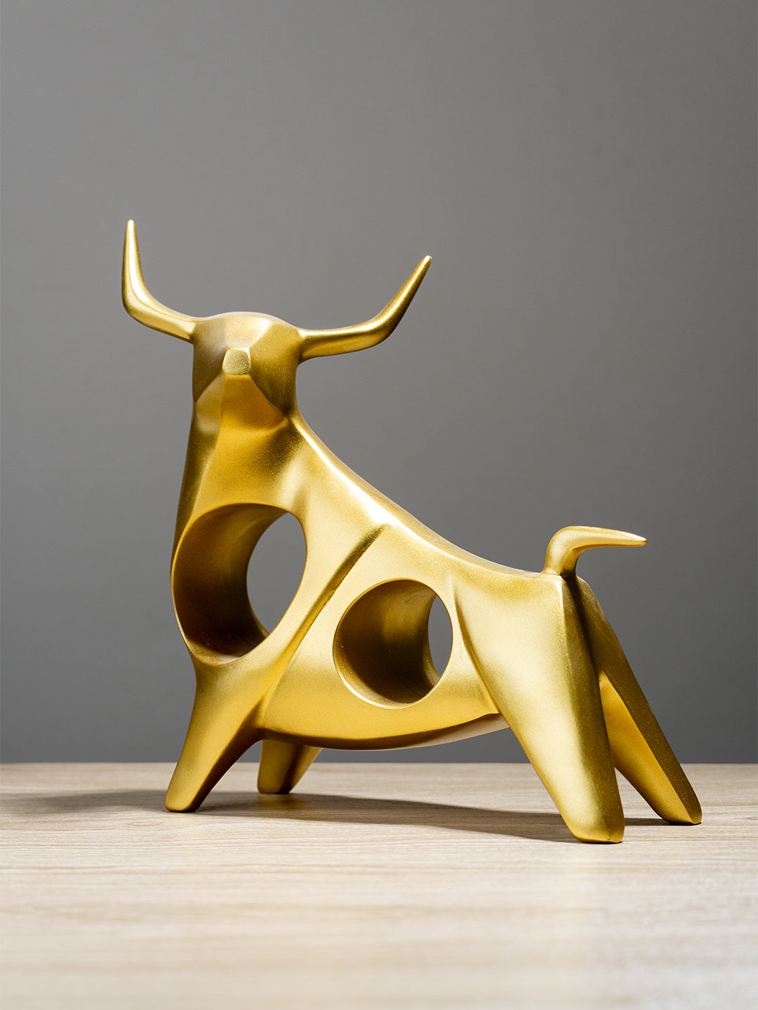 Lifestyle Integration: Imagine this Gold Bull Sculpture as a centerpiece in your living room or office, exuding strength and elegance. Its modern design with geometric cutouts creates a visually stunning effect, making it a conversation starter and a testament to your refined taste. Perfect for those who love contemporary art and unique decor pieces, this sculpture seamlessly integrates into various interior styles, enhancing the overall ambiance of your space.