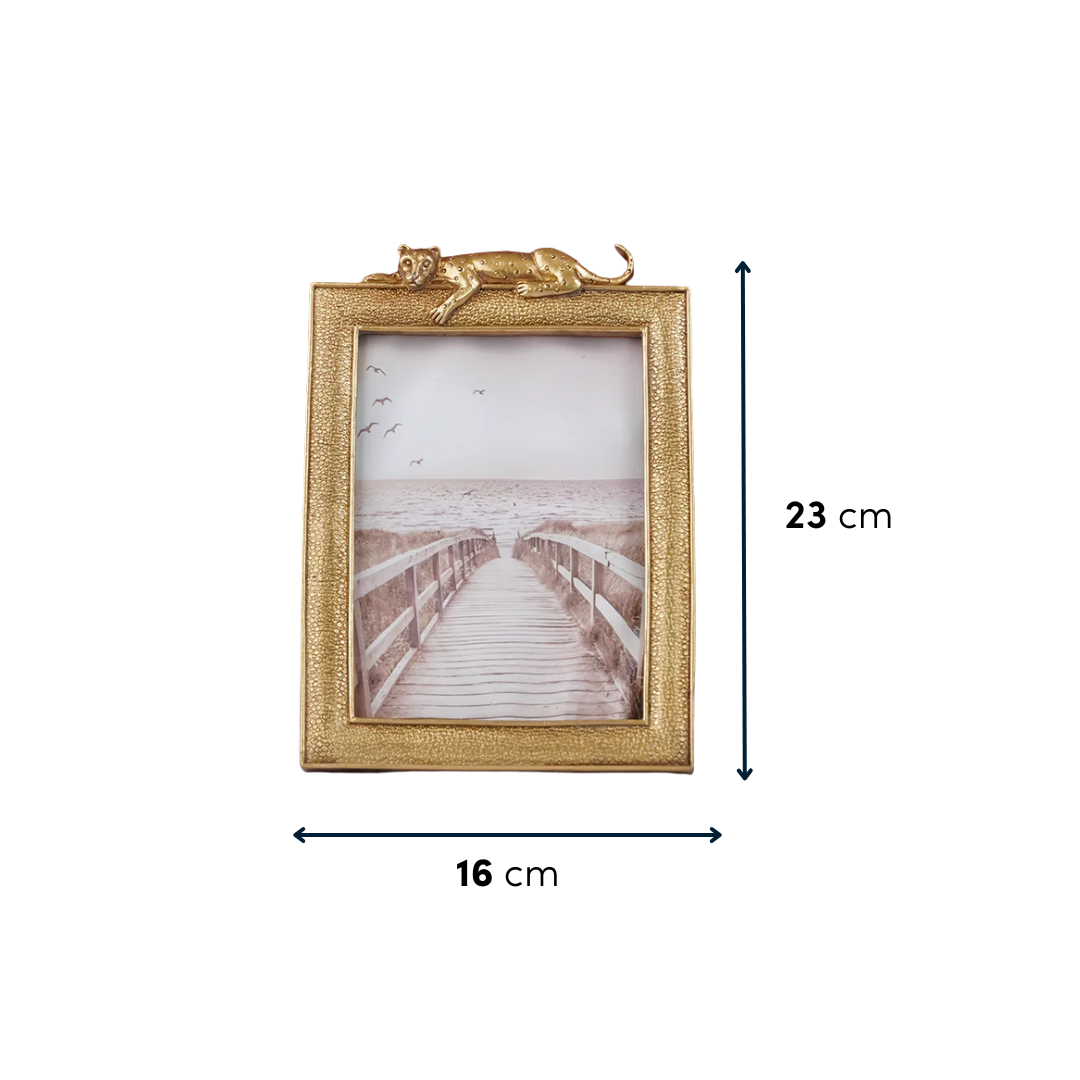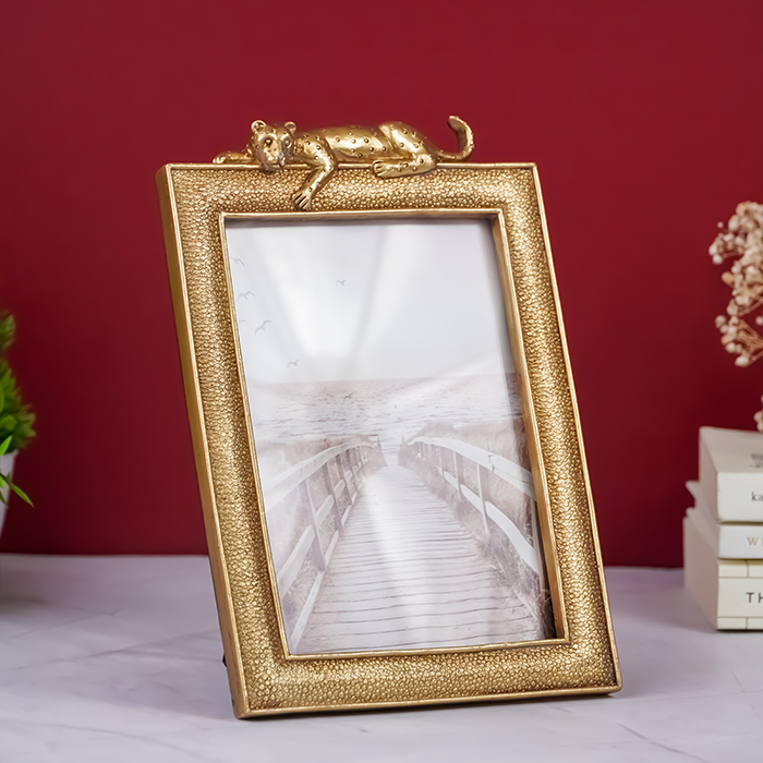 Why You Should Buy: This Gold Textured Photo Frame with Leopard Detail is more than just a way to display your photos; it is a piece of art that enhances your decor. Its unique design and luxurious finish make it a standout addition to any room, reflecting your taste for high-quality and unique decor items. Ideal for showcasing cherished memories, this frame not only highlights your photos but also adds a touch of elegance to your space.