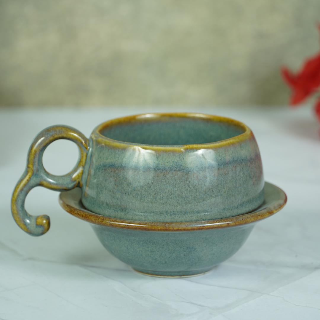 The accompanying saucer is crafted with the same attention to detail, featuring a matching grey glaze and a golden border. The saucer not only serves as a stylish base for the cup but also enhances the overall aesthetic of the set. Crafted from high-quality ceramic, the Grey Ceramic Unique Cup and Saucer with Golden Border is not only visually appealing but also durable and easy to maintain. Whether you're enjoying a solo moment of relaxation or hosting guests, this set adds a touch of luxury to your beverage experience.
