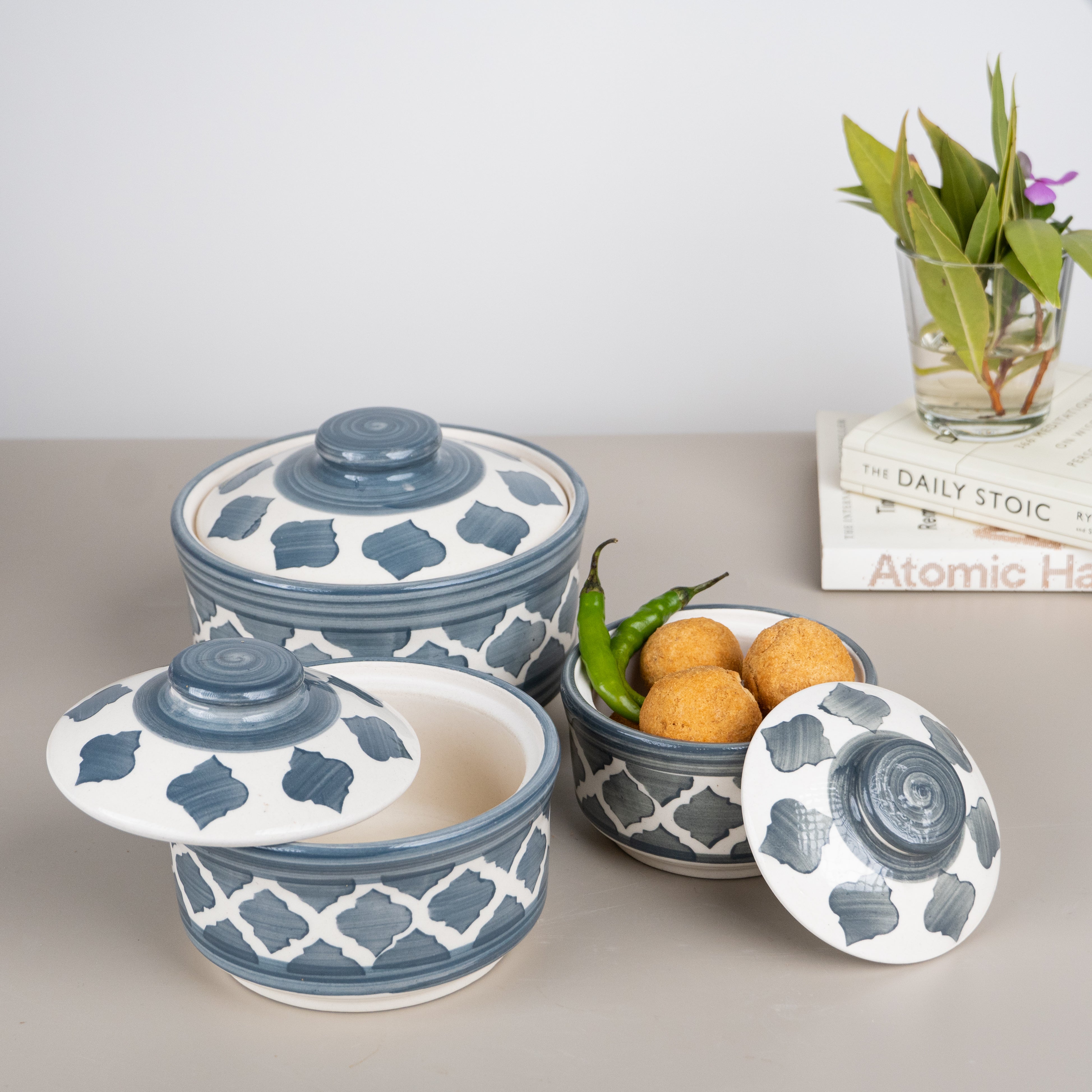 Whether you're cooking up hearty stews, savory casseroles, or delectable desserts, our Hand Painted Ceramic Casserole Set adds a touch of artisanal elegance to your kitchen and dining experience. Upgrade your culinary collection with these exquisite pieces that blend functionality with artistic craftsmanship, making every meal a delightful occasion.