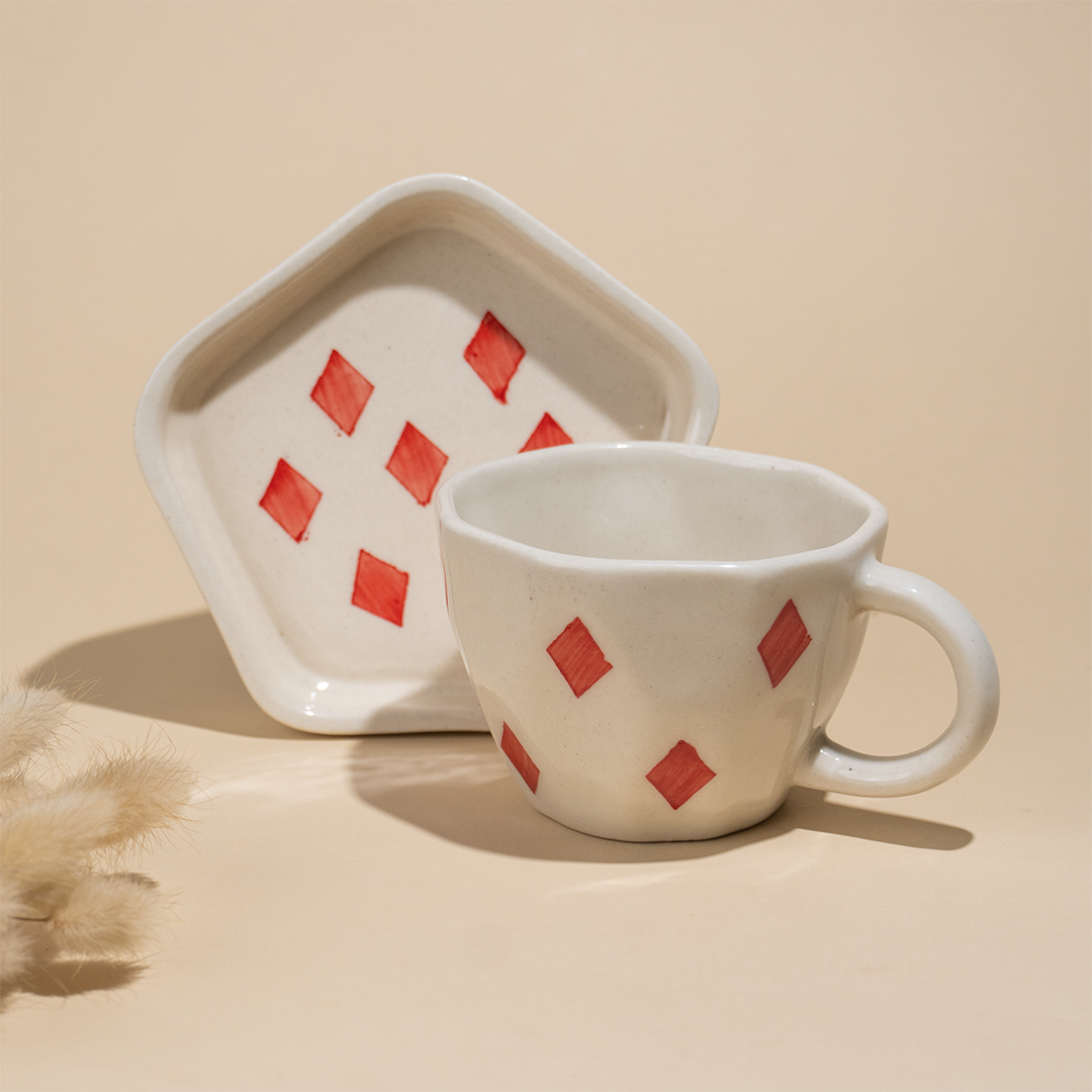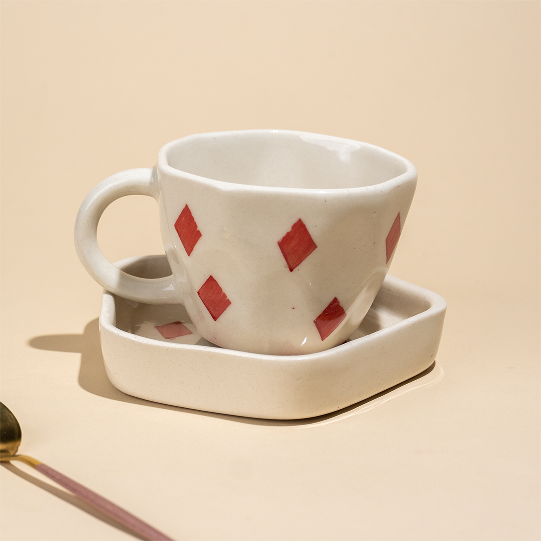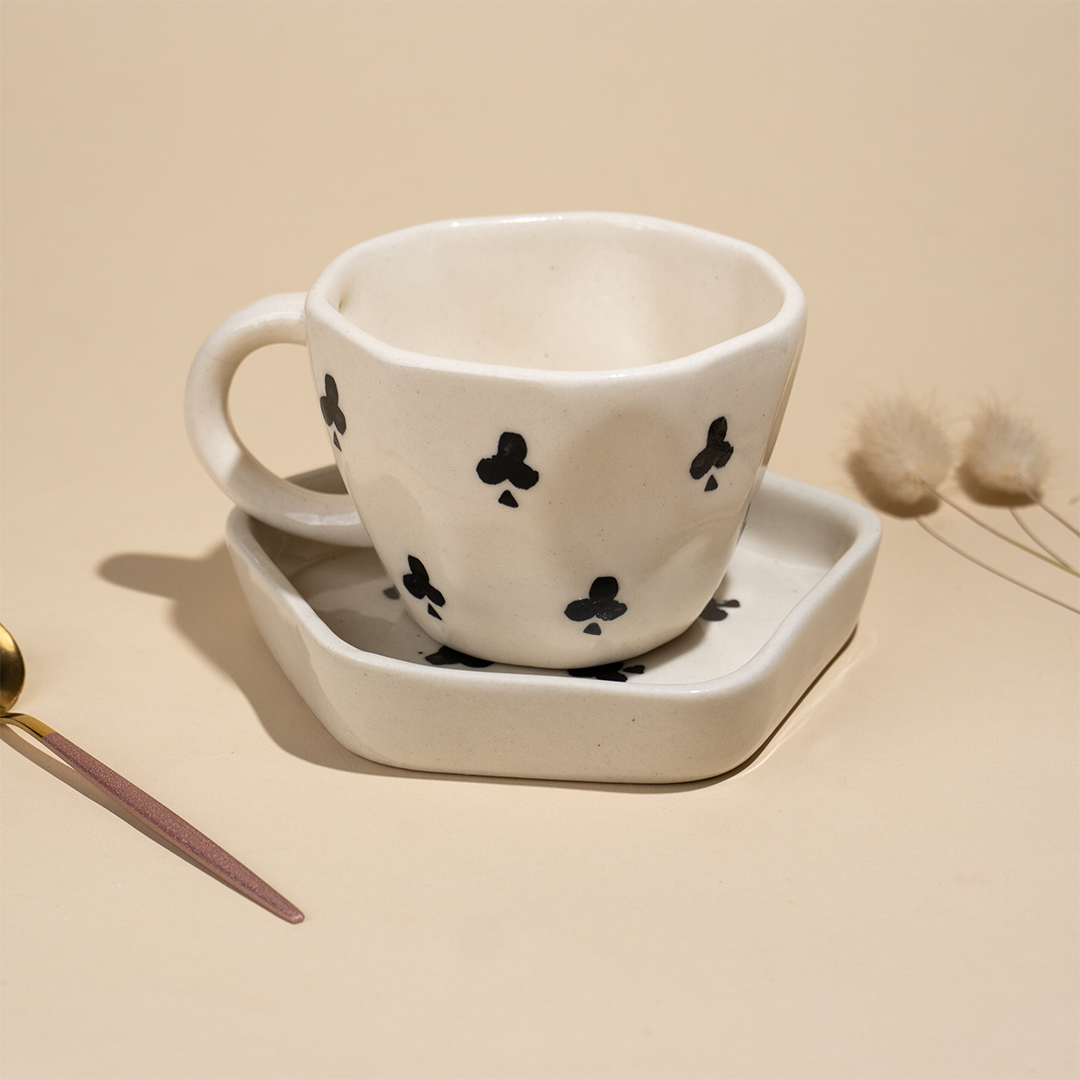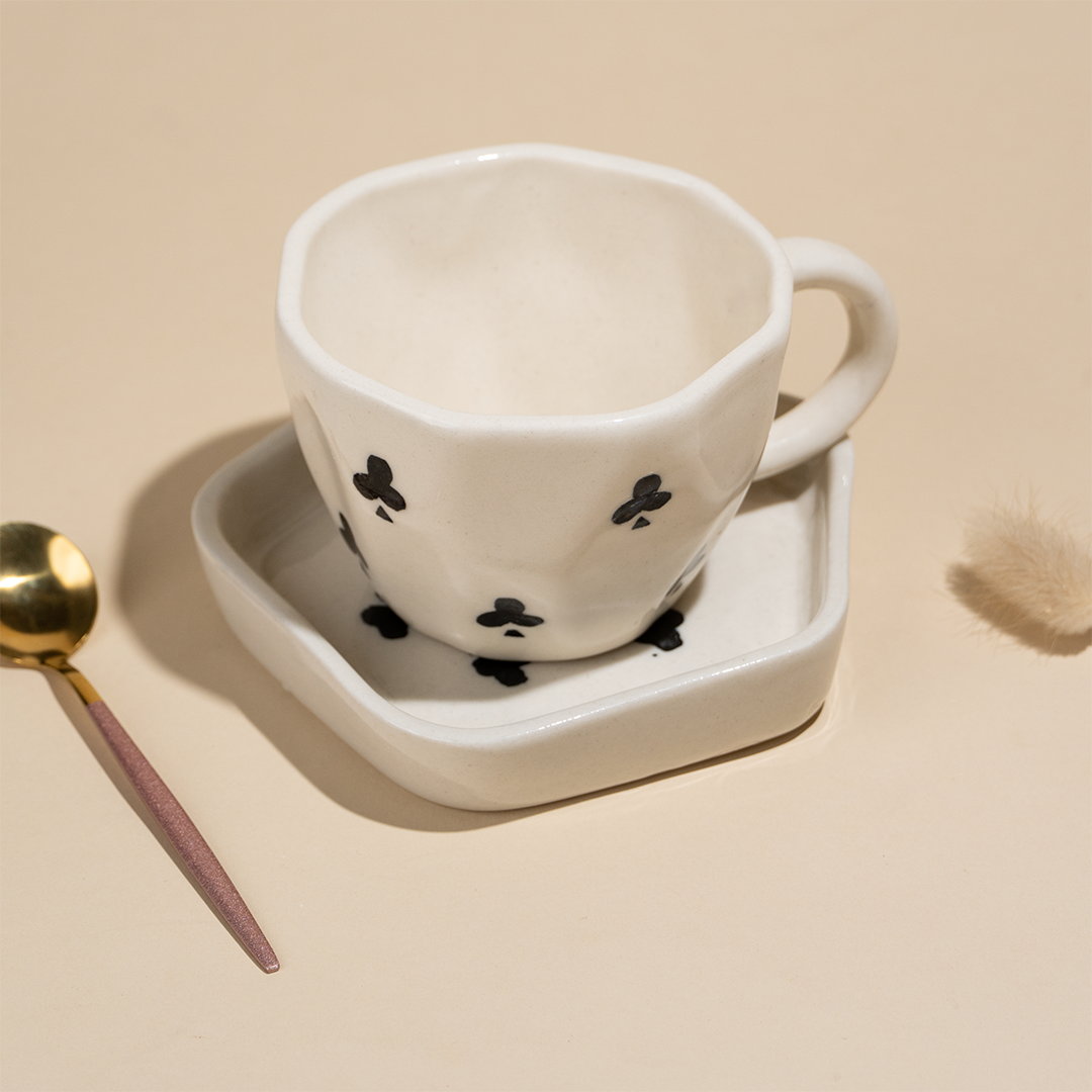 Bring fun and elegance to your tea or coffee moments with this handcrafted ceramic cup and saucer set of 4, inspired by the classic playing card suits — Heart, Diamond, Club, and Spade. Each cup features a unique hand-painted motif that adds a touch of creativity and charm to your serveware collection.