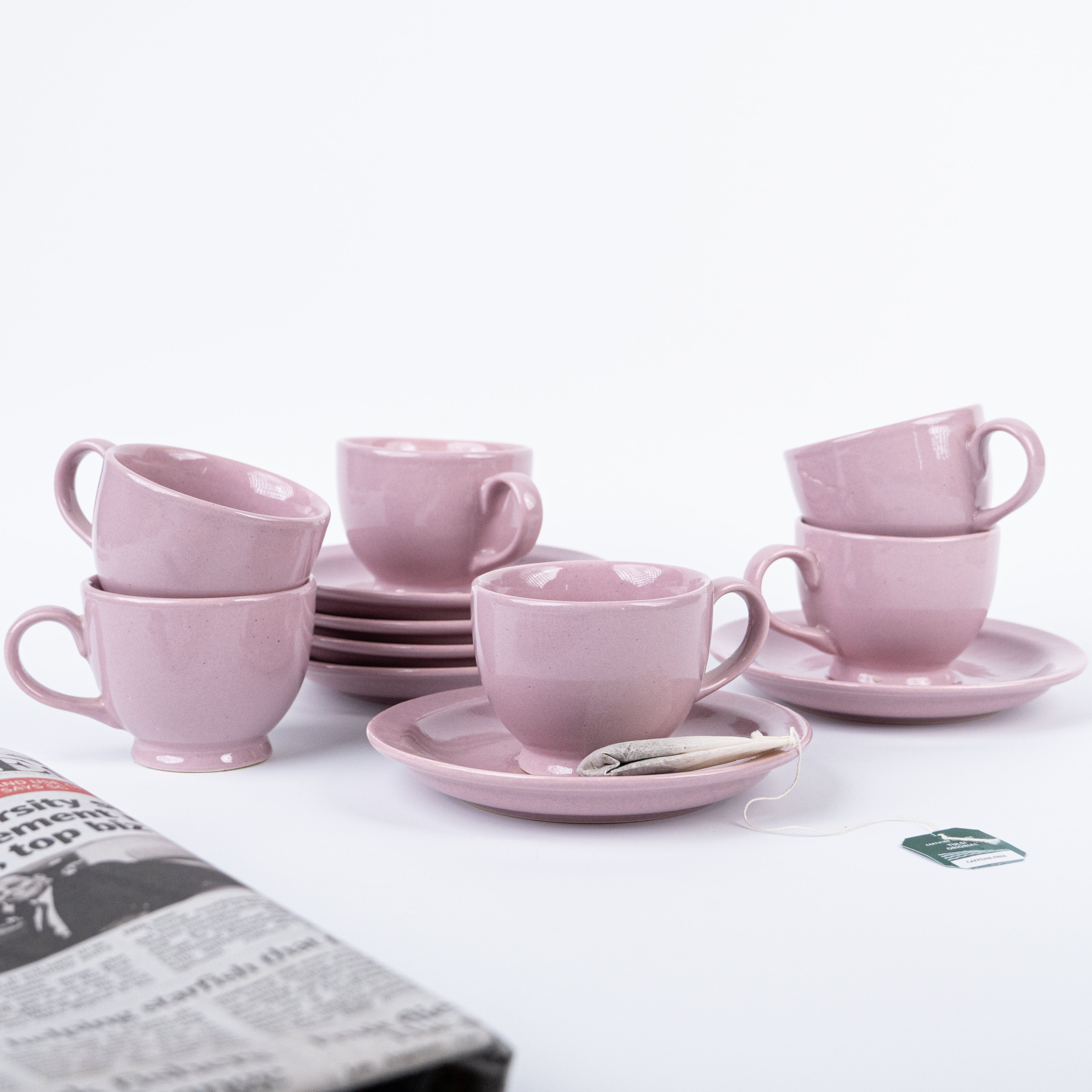 Crafted with precision, the ceramic material ensures a smooth and polished surface for both the cup and saucer. The cup is ergonomically designed for a comfortable grip, allowing you to savor your drink with ease. Whether you're hosting a tea party or having a quiet moment of reflection, this set combines functionality with aesthetic appeal, making it a lovely addition to your tableware collection.