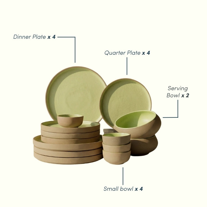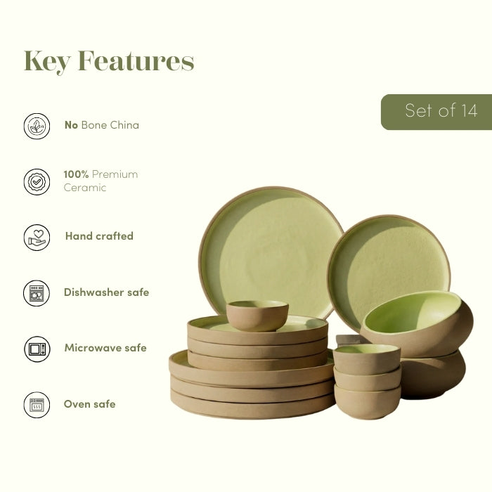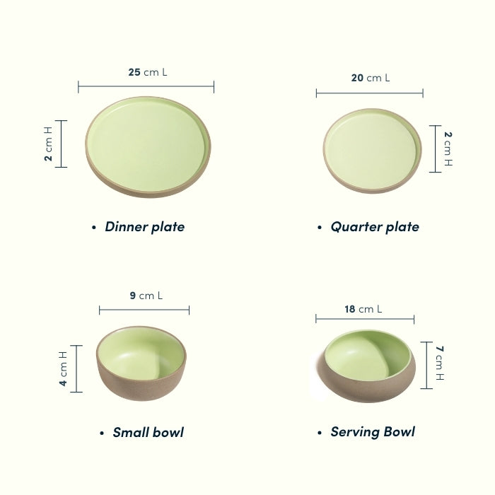 Designed for homes that value simplicity, functionality, and natural aesthetics, this ceramic dinner set offers a perfect balance of form and function. The light green glaze brings freshness to the table, while the rust exterior adds a grounded, earthy character. Its versatile design pairs beautifully with Indian, Asian, and continental cuisine.