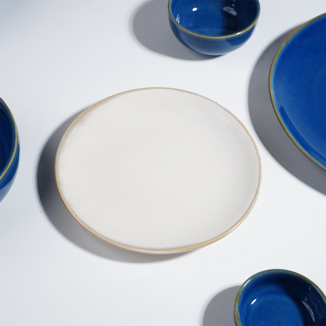 This blue and white ceramic dinner set combines modern design with everyday functionality. The bold yet balanced color contrast complements Indian, Asian, and continental cuisines, making it a versatile addition to any home.