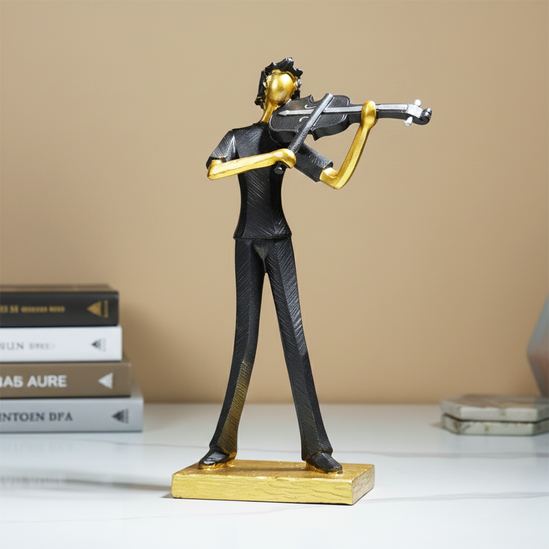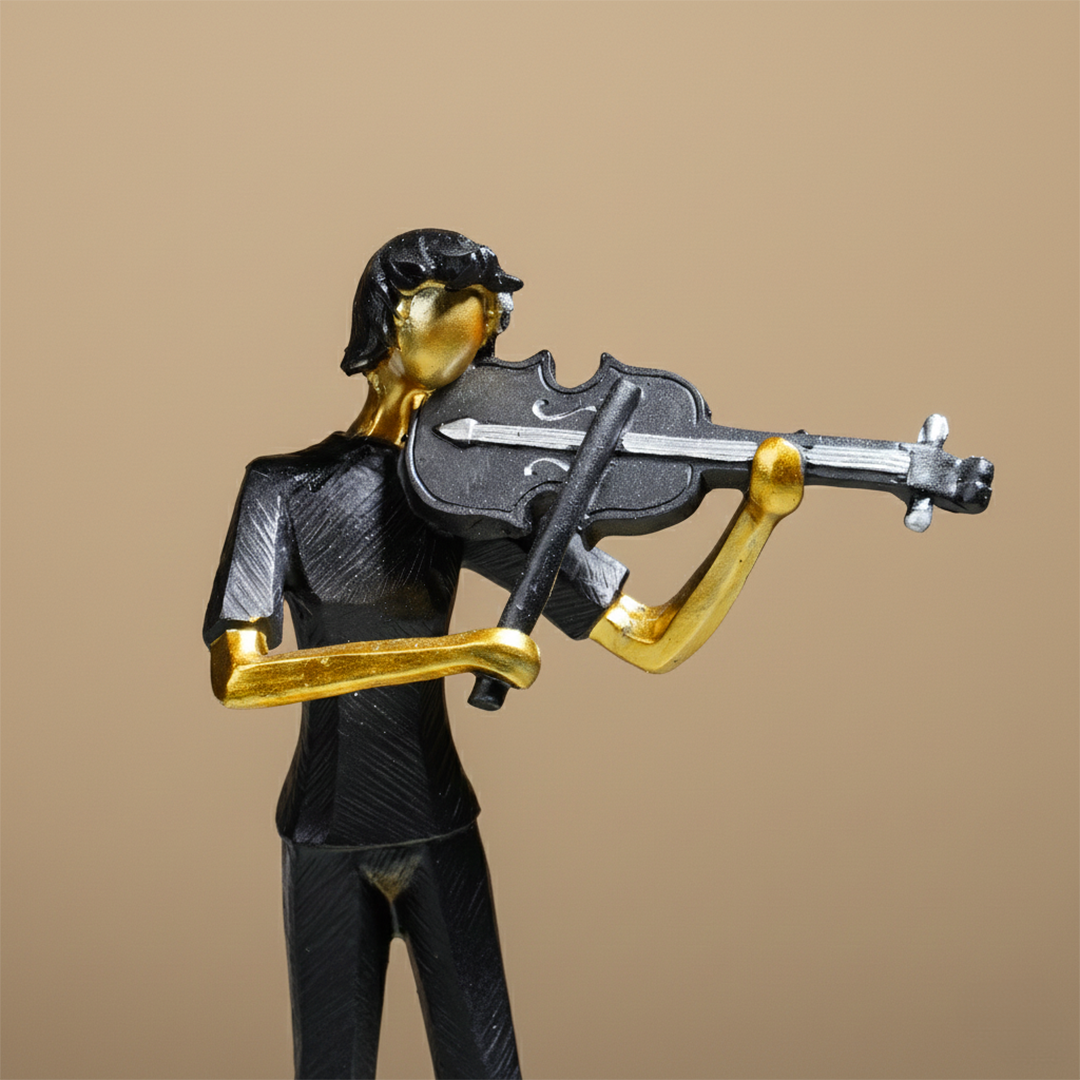 Add elegance, movement, and artistic expression to your space with this modern abstract violinist sculpture. Designed with a sleek black body, metallic gold arms, and a refined silver violin, this contemporary figurine captures the emotion and rhythm of live music in a visually striking form.