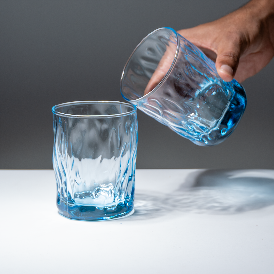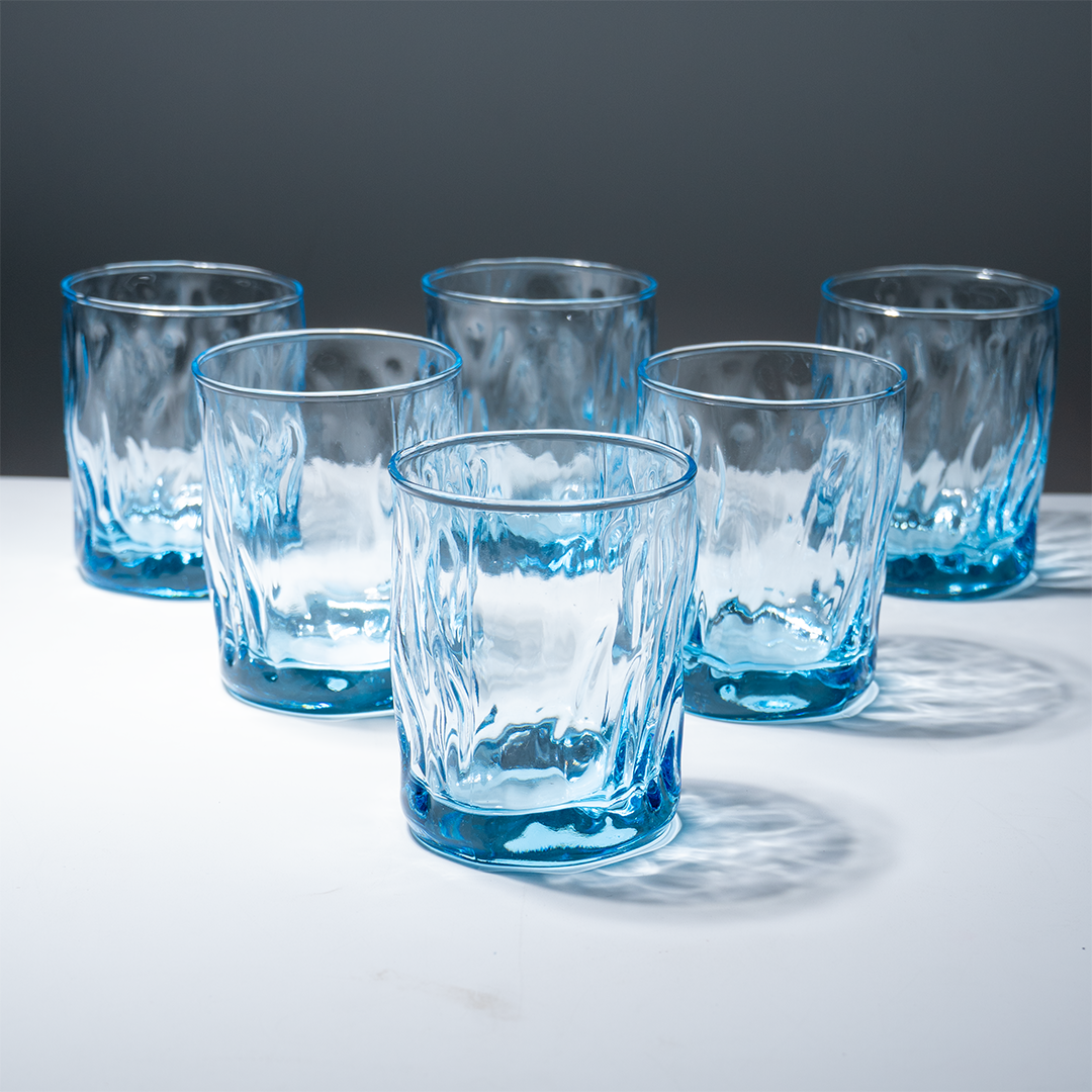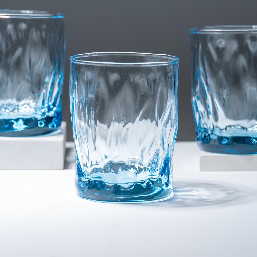 Enhance your everyday drinkware with this set of 6 ocean-blue textured whiskey glasses, designed to bring sophistication and style to every sip. Made from high-quality glass, these tumblers feature a subtle faceted texture that catches the light and adds a tactile dimension, while the soft blue tint gives a refreshing, modern feel. Ideal for chilled juices, cocktails, water, or any beverage you choose — these glasses make your table feel thoughtfully curated and beautifully cohesive.
