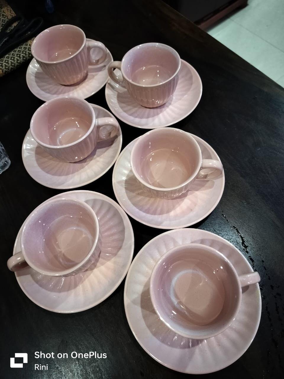 Introducing our Pink Ceramic Cup and Saucer, a delightful and charming addition to your tea or coffee ritual. This cup and saucer set is designed to bring a touch of elegance and whimsy to your beverage enjoyment, featuring a soft pink glaze that adds a subtle pop of color.