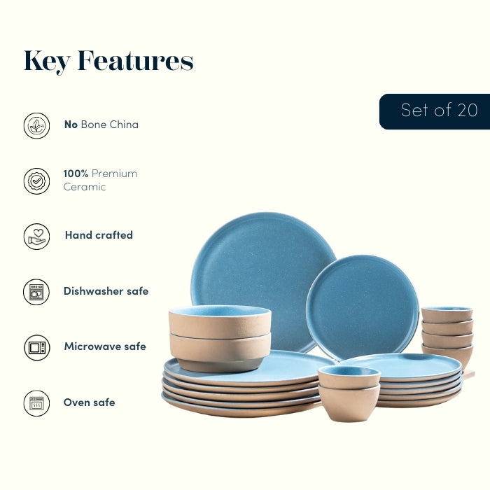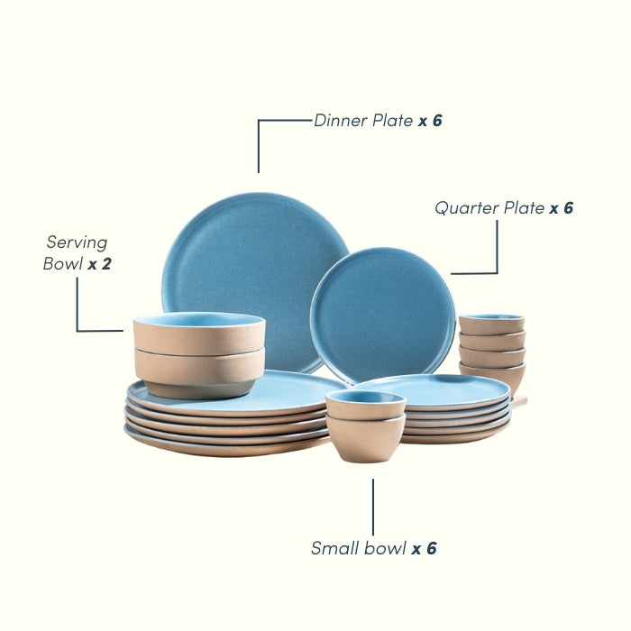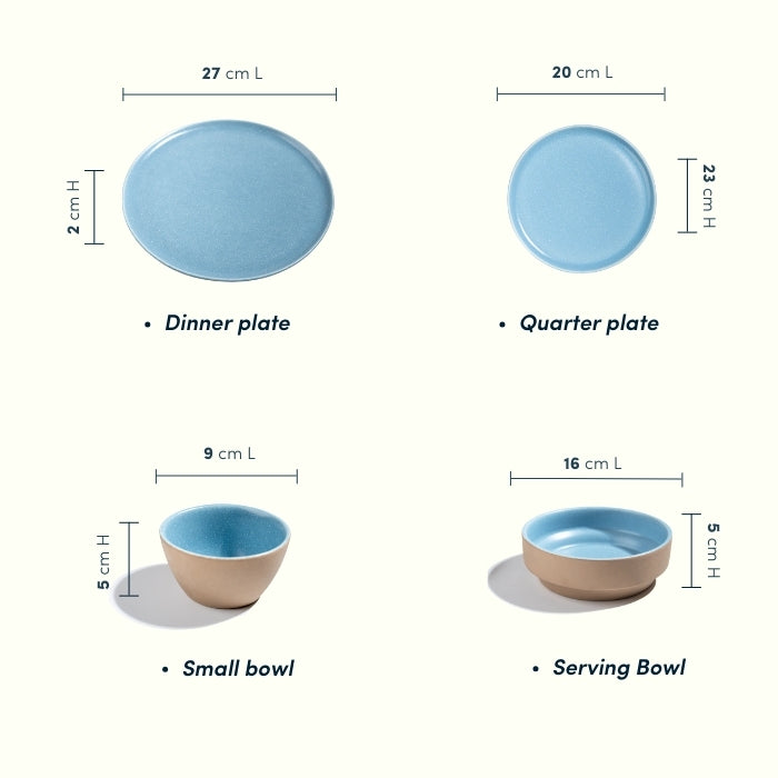 This ceramic dinner set is designed for homes that appreciate clean design, soft colors, and everyday practicality. The sky blue glaze brings a light, refreshing feel to the table, while the neutral exterior keeps the look grounded and versatile. Suitable for Indian, Asian, and continental cuisine, this set transitions effortlessly from daily dining to hosting guests.