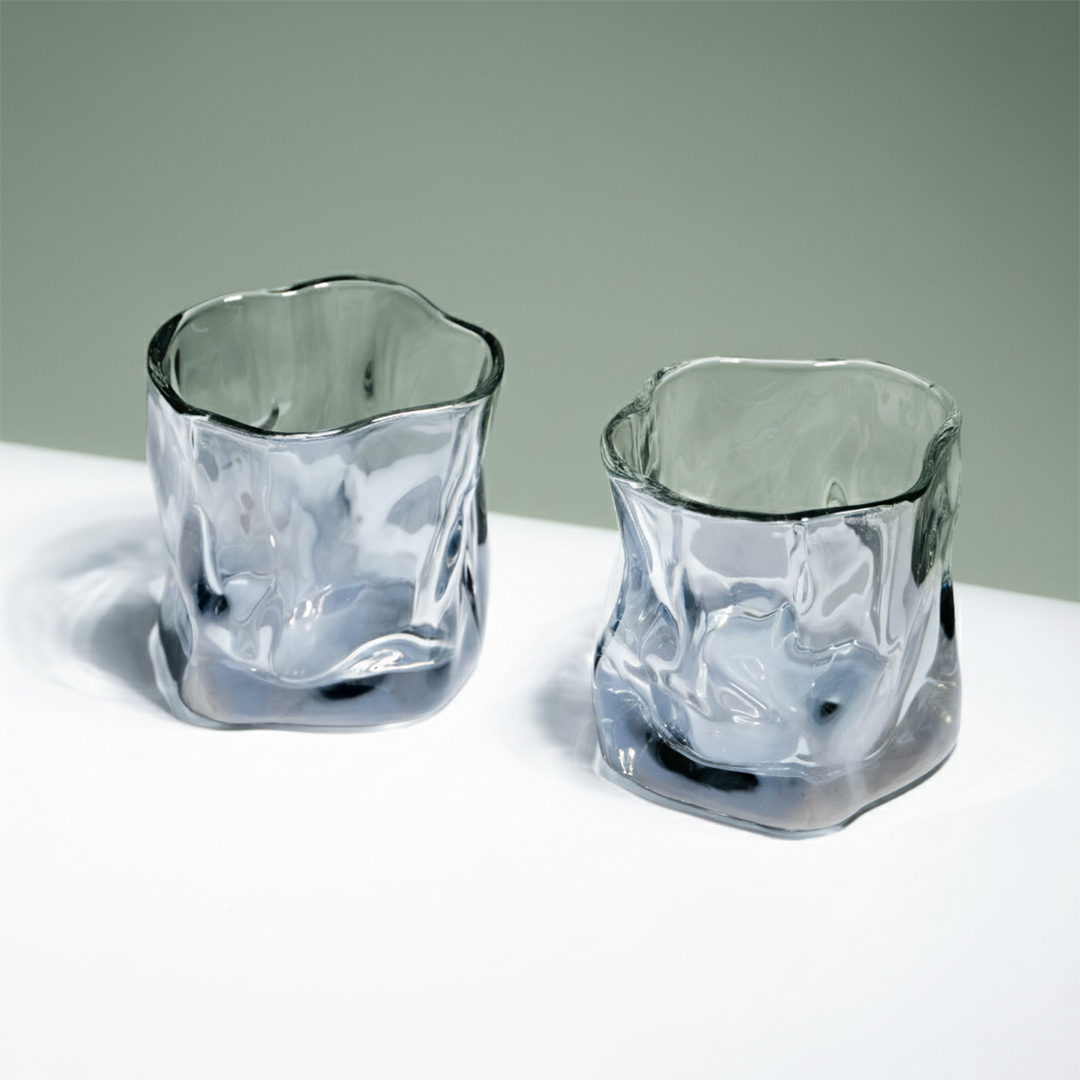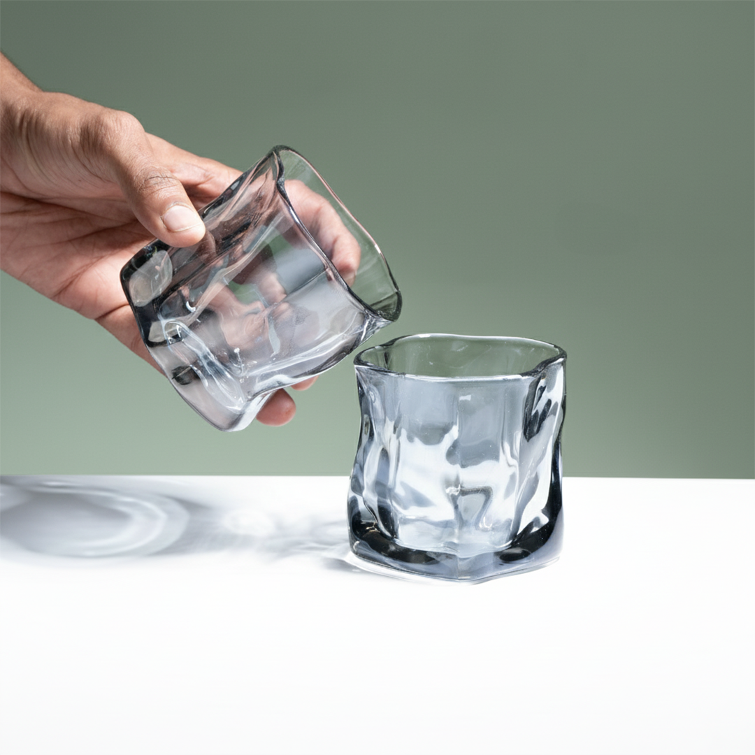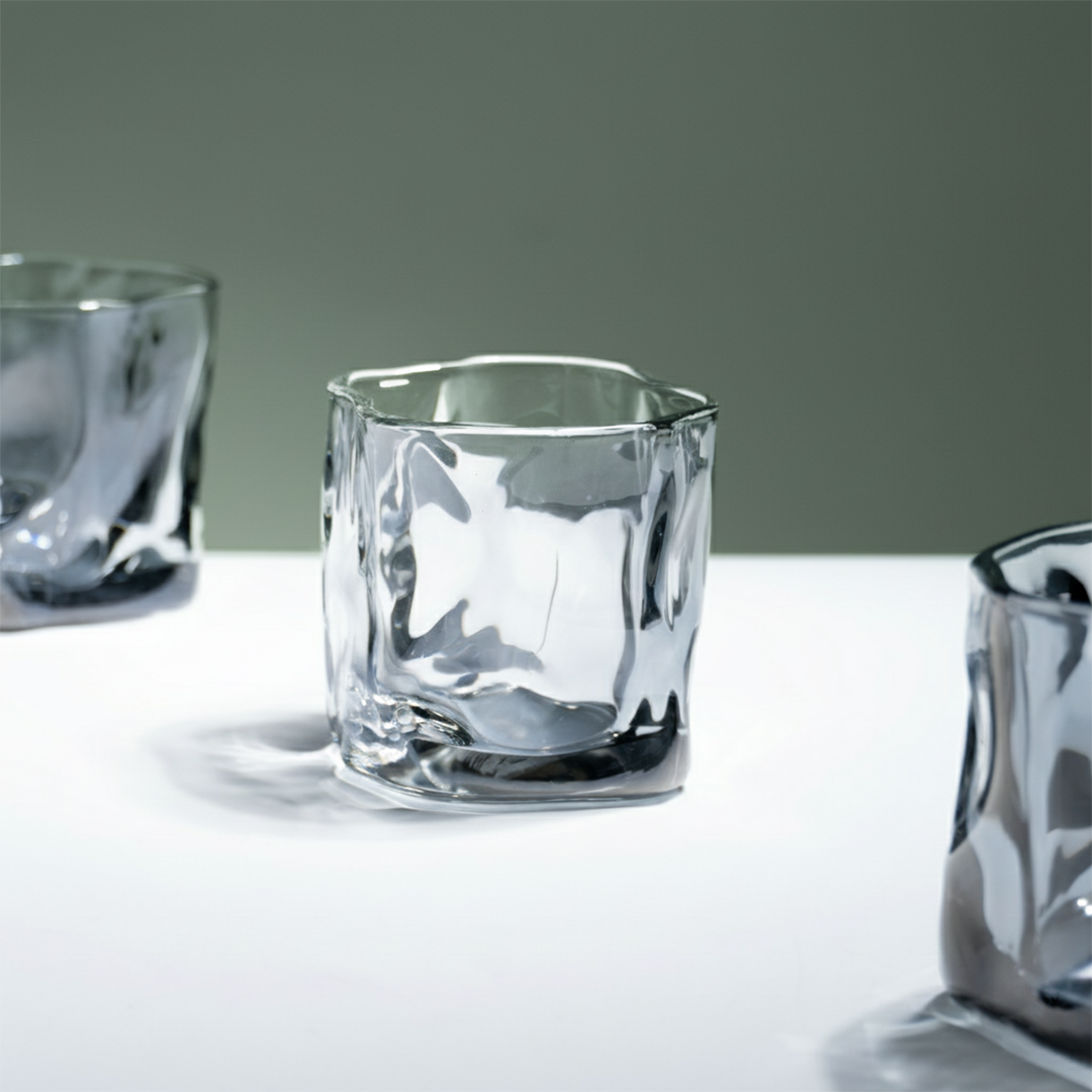Lifestyle Integration: Imagine hosting a dinner party where these smoky gray glasses serve as conversation starters, with their unique wave design catching the eye of every guest. Whether you're serving a refreshing lemonade on a sunny day or a crafted cocktail during an evening gathering, these glasses add a modern and stylish touch to any occasion. Their distinctive shape not only enhances grip but also adds an artistic element to your everyday dining.