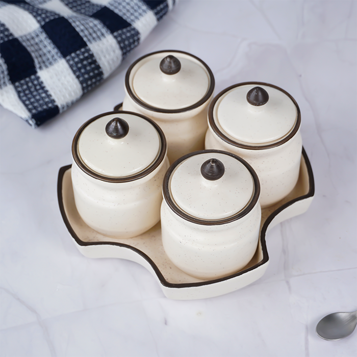 Introducing our White Ceramic Pickle Jar Set, a charming and practical addition to your kitchen and dining space. This set of 4 pickle jars is designed to bring a touch of elegance and functionality to your culinary storage needs.