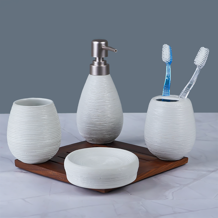 Imagine starting your day with a sense of calm and elegance as you reach for your toothbrush from the sleek white holder or pump soap from the stylish dispenser. This set not only serves a practical purpose but also brings a refined and modern touch to your everyday routine.