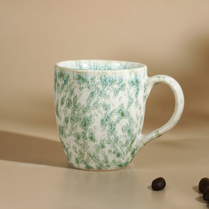 Add an artistic touch to your drinkware collection with this speckled white and green ceramic mug. Featuring a distinctive textured glaze that combines natural tones of white and green, this mug stands out as a one-of-a-kind piece. Perfect for enjoying your favorite coffee, tea, or latte, its handcrafted aesthetic brings warmth and charm to your everyday routine.